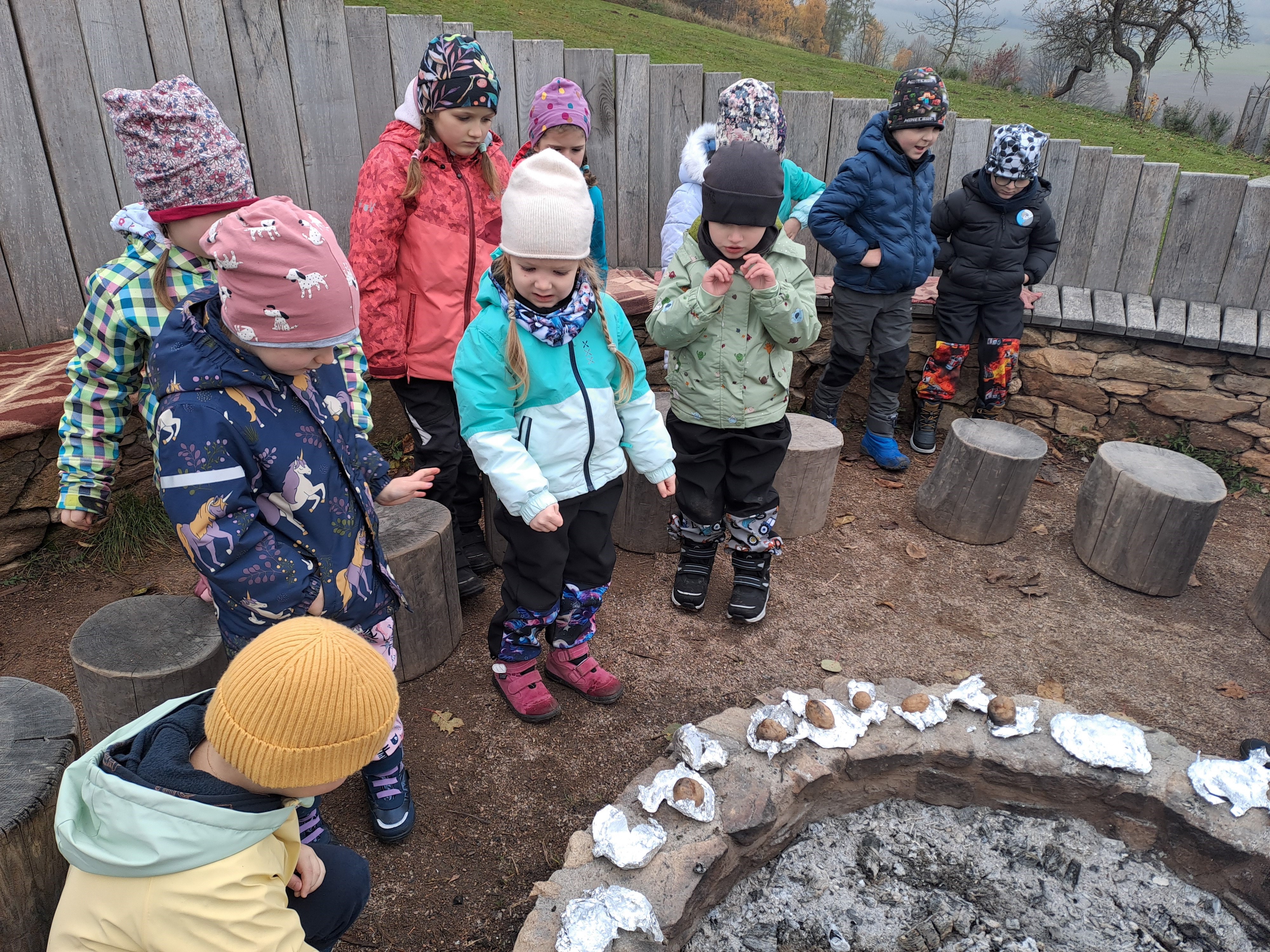Barevné listí šustilo pod nohama a děti si naplno užívaly podzimní školu v přírodě. Jedním z nejoblíbenějších programů se stalo pečení brambor v popelu. Společně jsme si připravili ohniště, každý si vybral svou bramboru a pak už jen čekal, až se z ní po dopečení stane voňavá podzimní dobrota. Čas pečení si děti zkrátily hrabáním spadaného listí a výrobou papírového draka. Brambory z popela chutnaly moc a děti pamatovaly i na draka Bramboráka, který prý údajně bydlí ve staré podzemní chodbě pod naší školou. Prý má hrozně rád vše, co je z brambor a tak mu děti pár pečených donesly. A co se nestalo. Druhý den brambory byly pryč a ke konci pobytu přišel drak Bramborák osobně poděkovat za tu dobrotu. Týden ve škole v přírodě tak nebyl jen o dobrodružstvích v lese, ale i o společných zážitcích, které zahřejí stejně jako čerstvě upečená brambora.