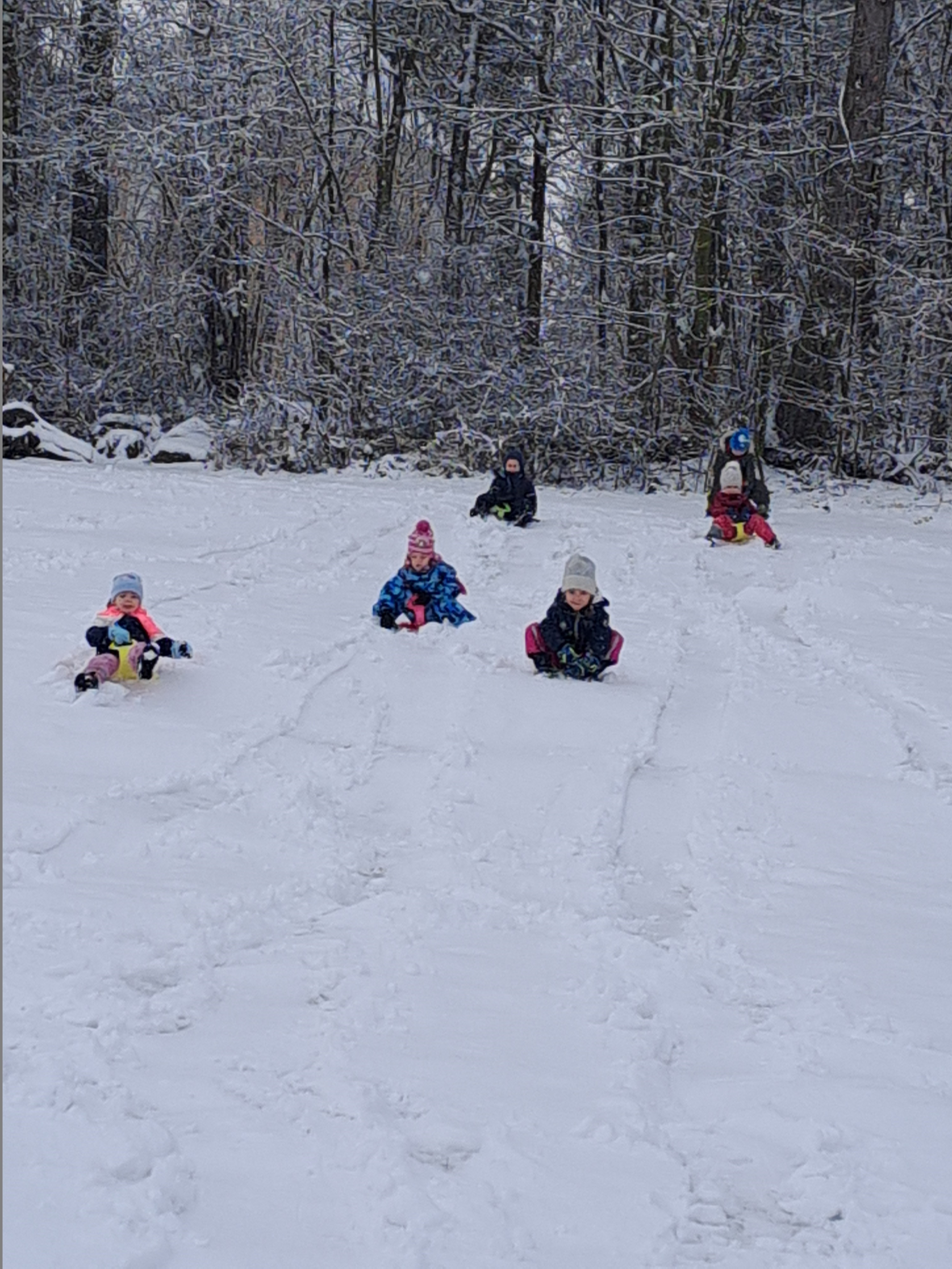 Dopoledne i odpoledne jsme vyrazili jsme ven na pořádnou klouzačku. Sníh si opravdu užíváme. Bobujeme, stavíme sněhuláky. Někdo se pustil i dokonce do větších staveb ze sněhu a vytvořil přímo sněhovou pevnost. Čaroval